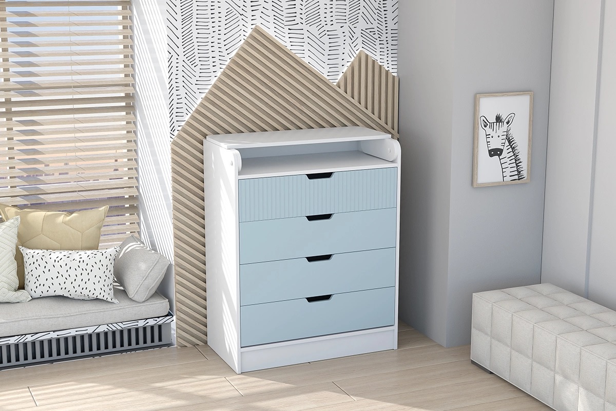 Комод "Бриз МДФ (полосы) с пеленальным столиком" украсит любой интерьер и станет хорошим дополнением для любой детской или спальни.