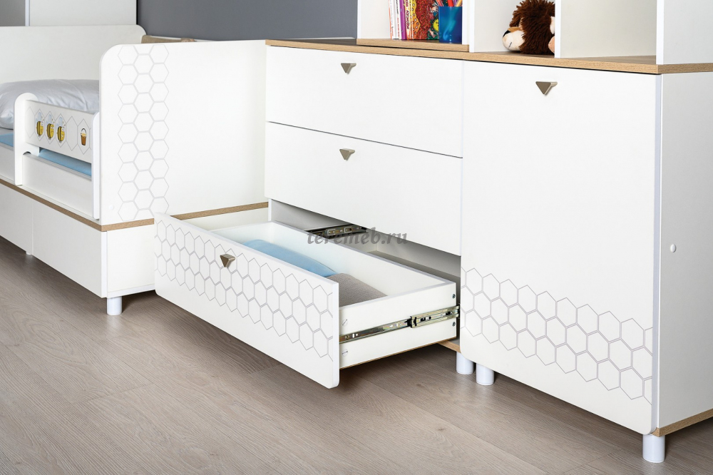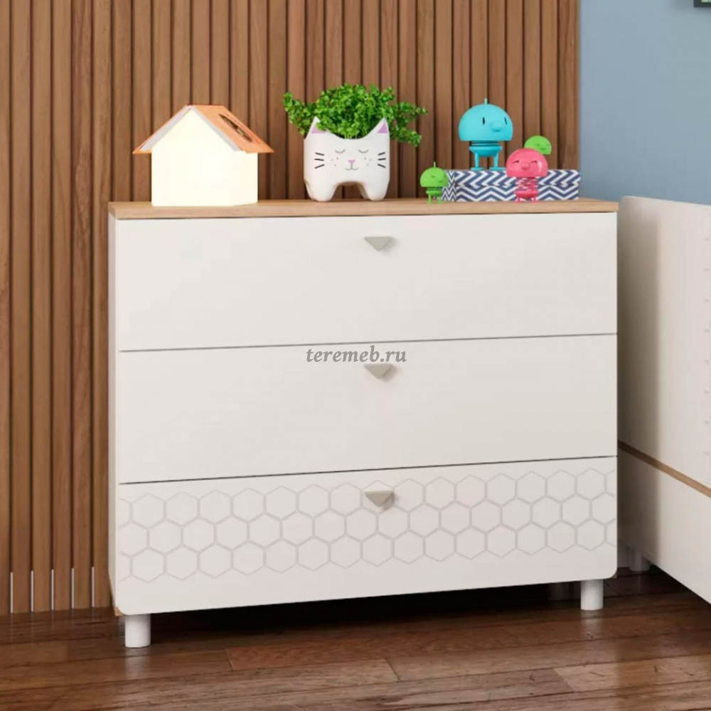 Описание: Комод "Эйп 13.222" имеет современный дизайн и оптимальные размеры. Скандинавские мотивы универсального цветового решения делают эту модель подходящей и девочкам, и мальчикам.