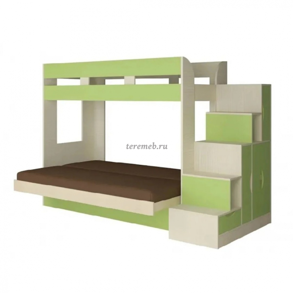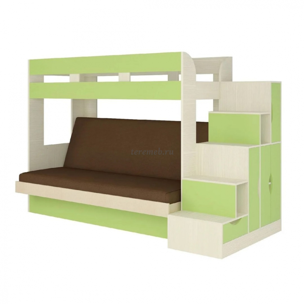 Диван первого яруса имеет механизм трансформации "книжка" с двумя положениями: "диван" и "кровать".