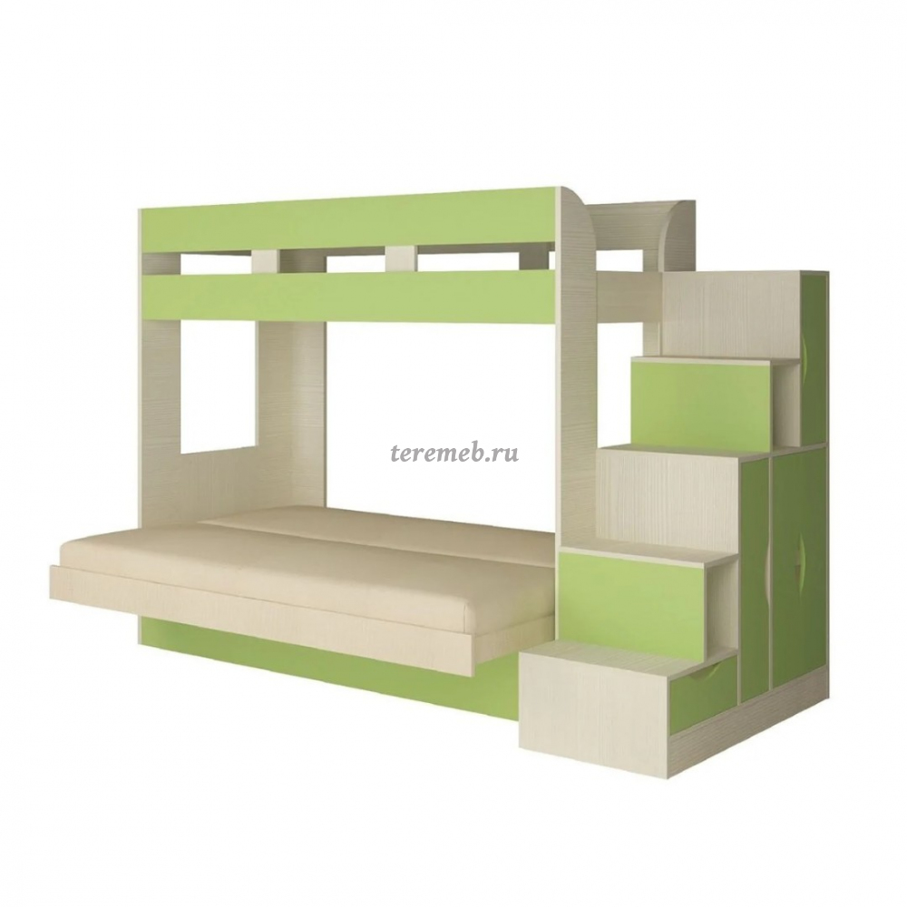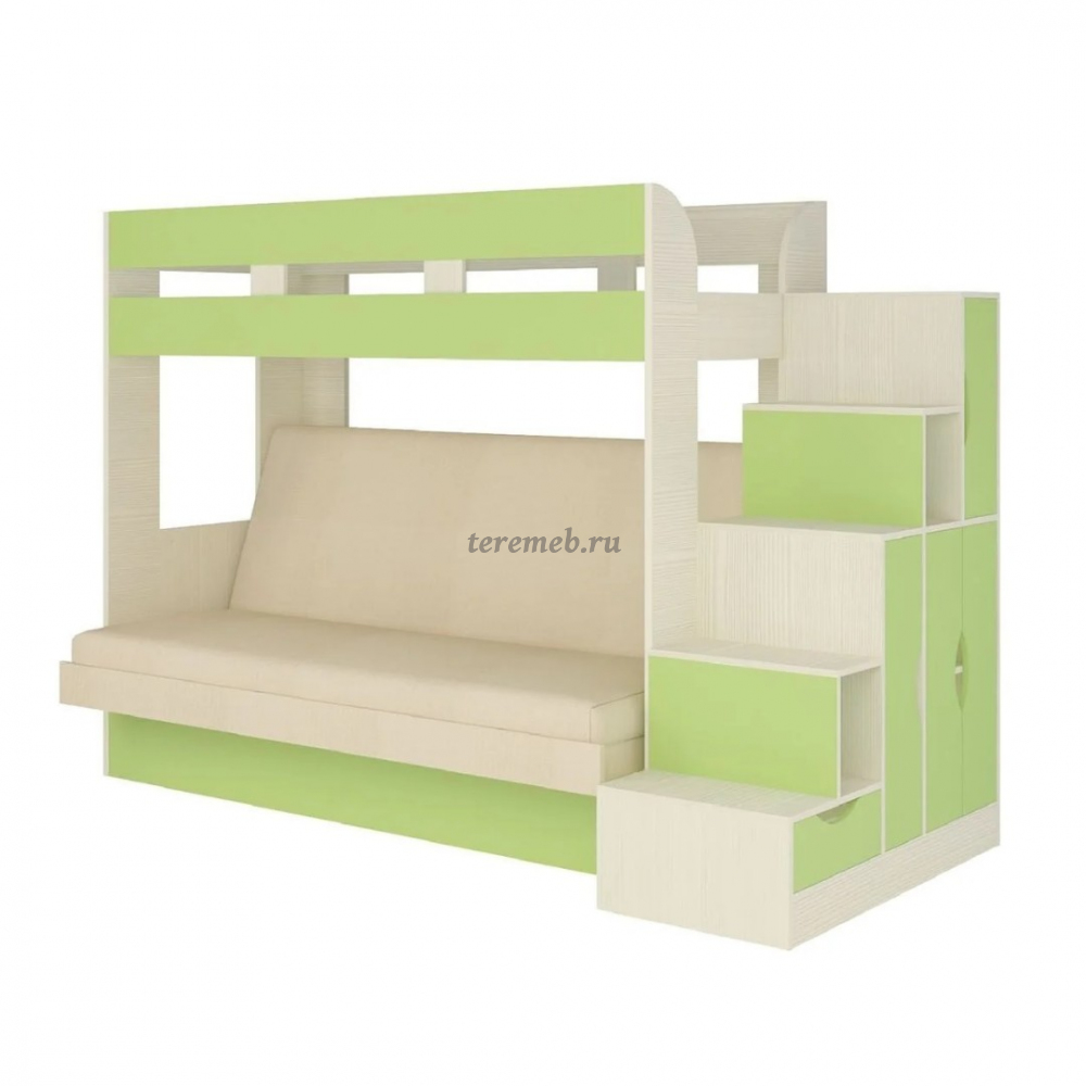 Диван первого яруса имеет механизм трансформации "книжка" с двумя положениями: "диван" и "кровать".
