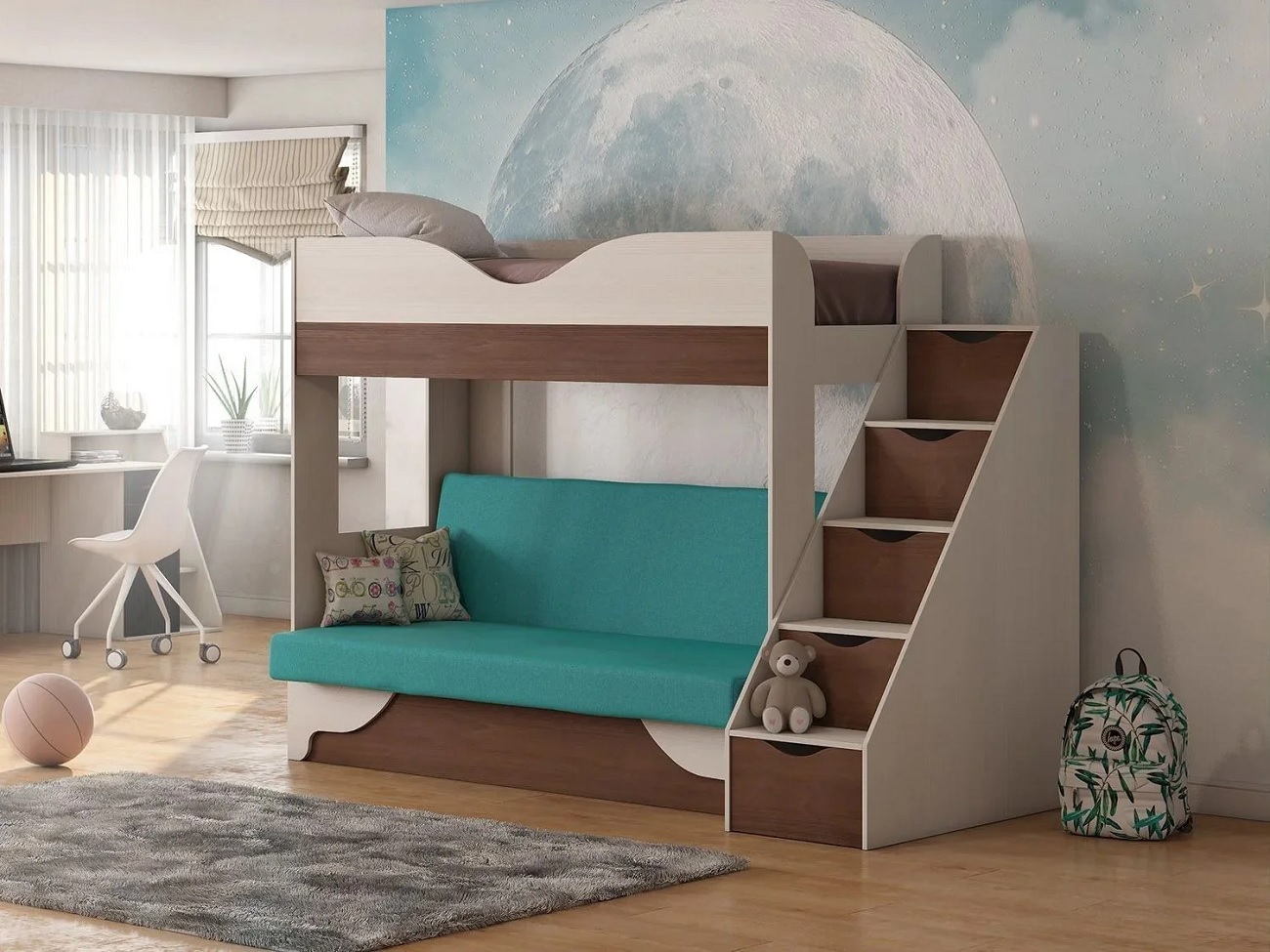 Описание: Двухъярусная диван-кровать "Латте 77-01" оригинальная функциональная модель на два возраста для ребёнка от 3-х лет и подростка.