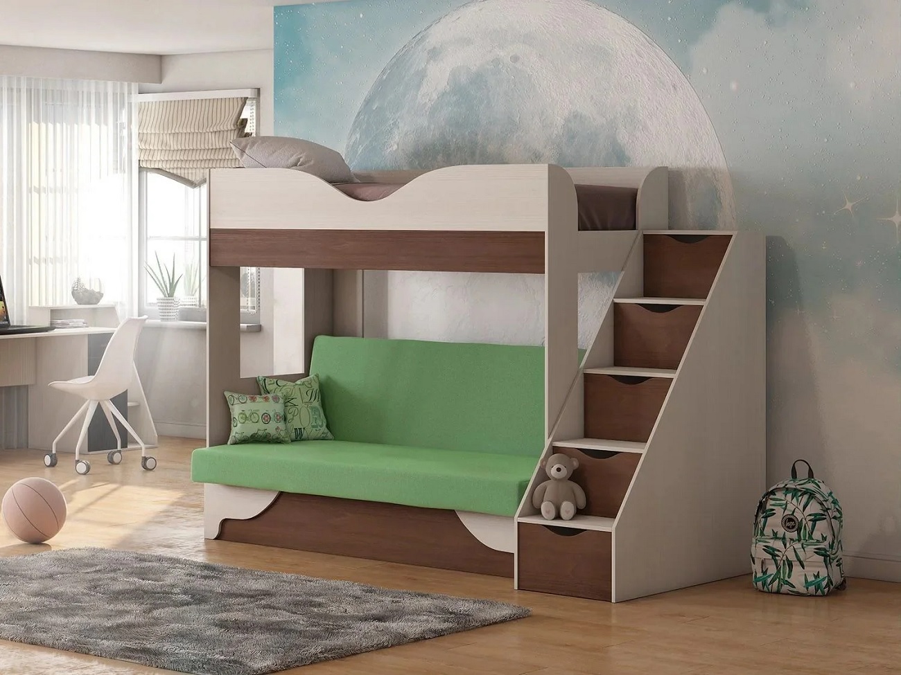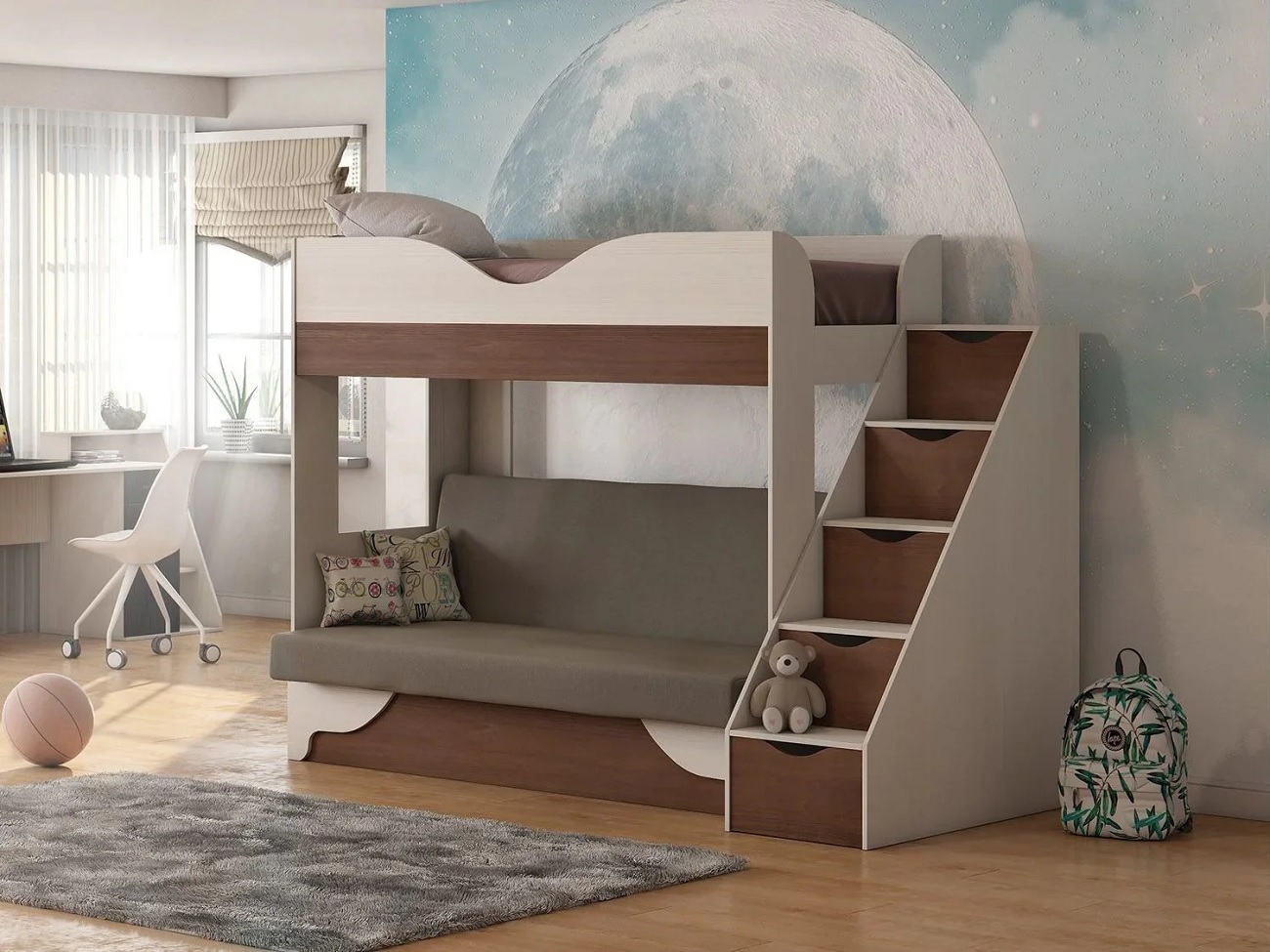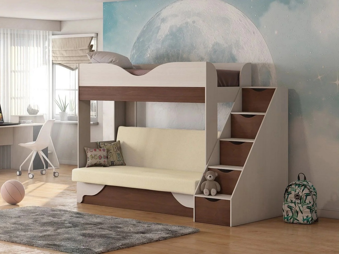 Двухъярусная диван-кровать "Латте 77-01" сделает комнату просторной и прослужит долгие годы, ежедневно радуя детей и его родителей своей функциональностью.
