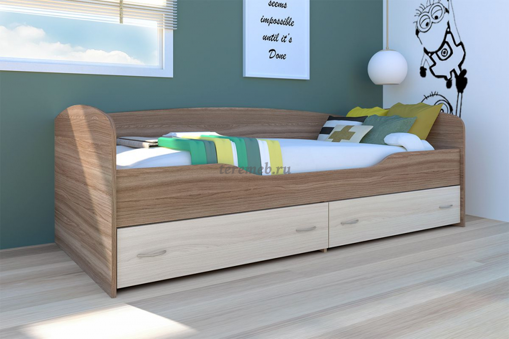 Удобная кровать с ящиками "Бриз-2" — уютный и практичный вариант для любой интерьера детской или подростковой комнаты.