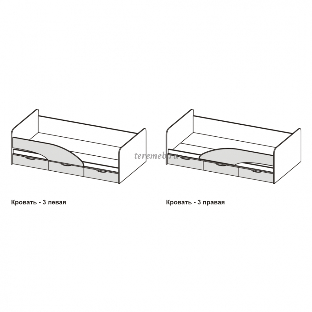 Модель изготавливается в левом или правом исполнении. При заказе необходимо уточнять вариант изготовления. На основном фото кровать ЛЕВОСТОРОННЯЯ.