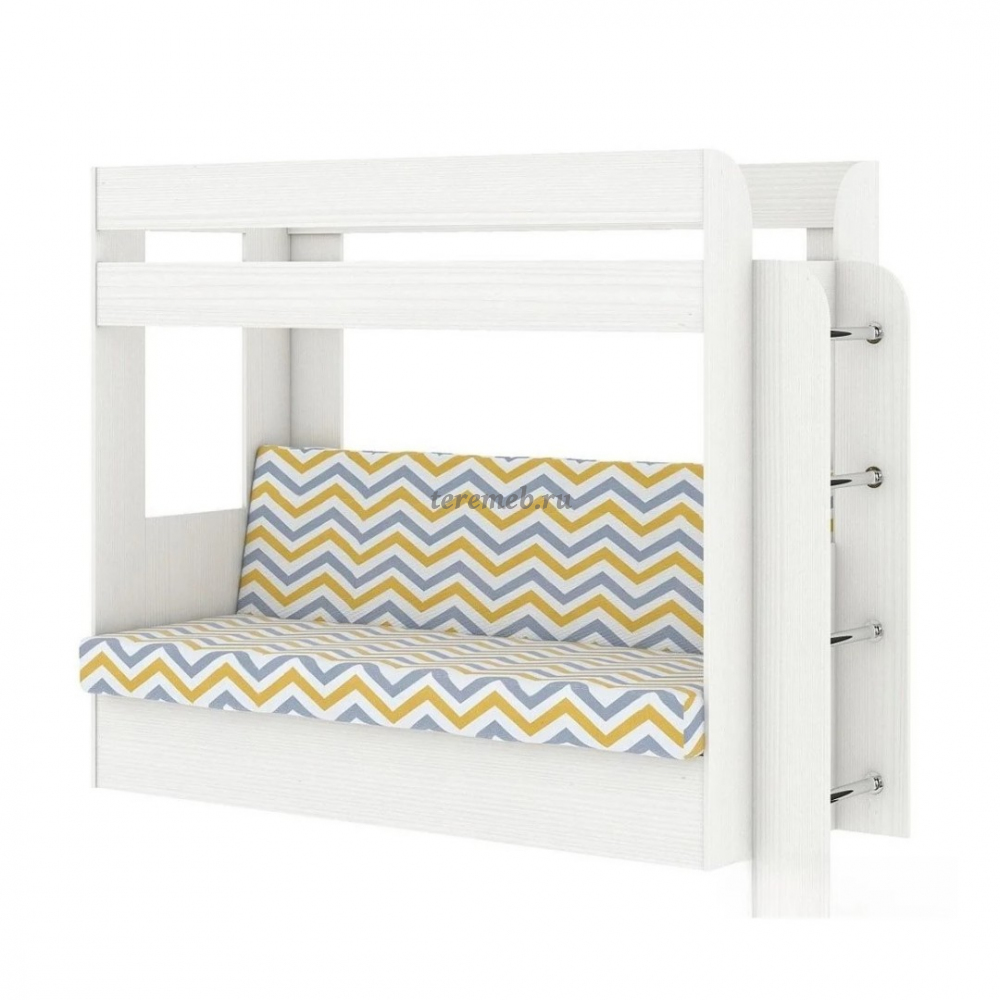 Диван первого яруса имеет механизм трансформации "книжка" с двумя положениями: "диван" и "кровать".