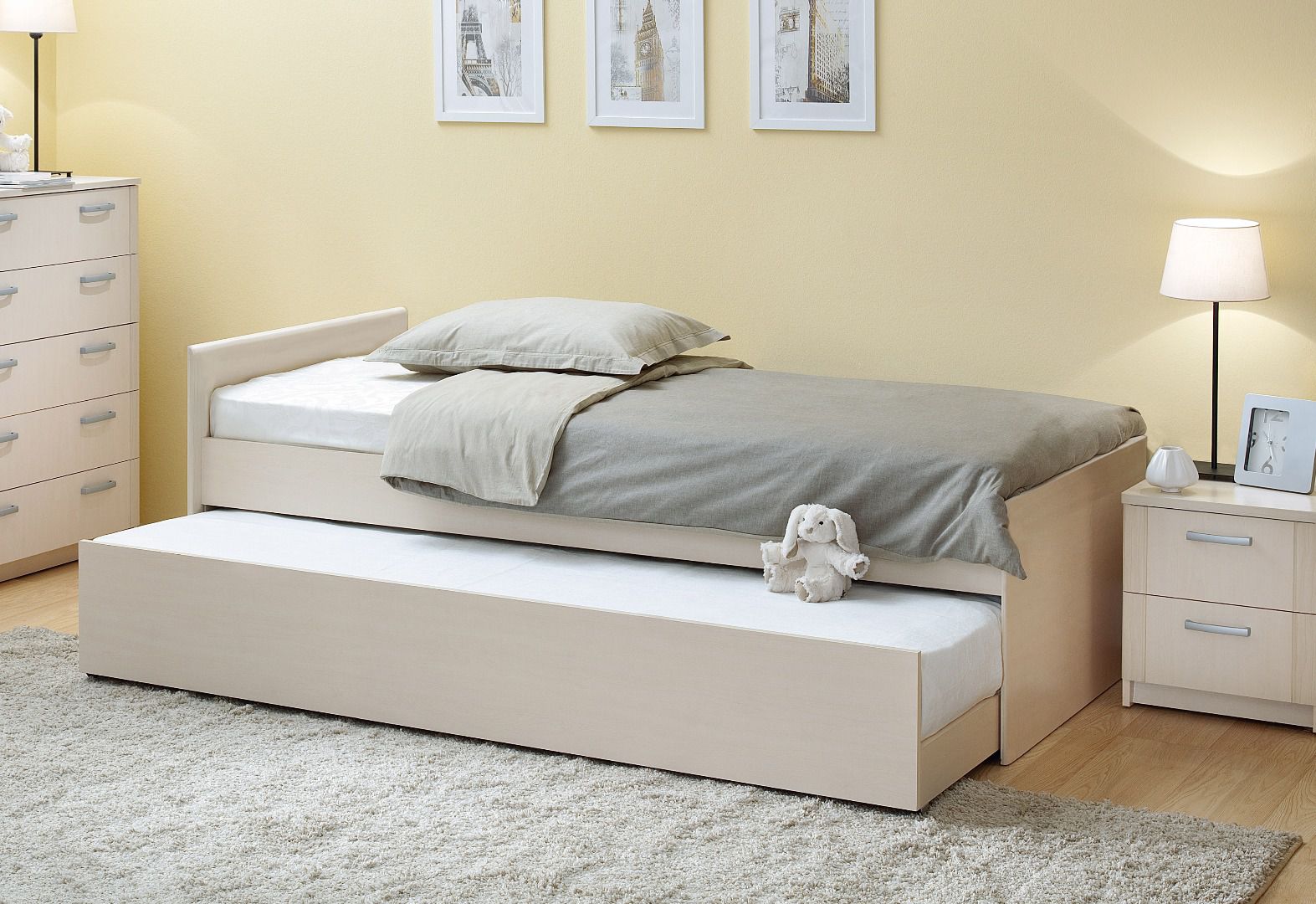 Кровать имеет простой и надёжный механизм выкатывания дополнительного спального места.