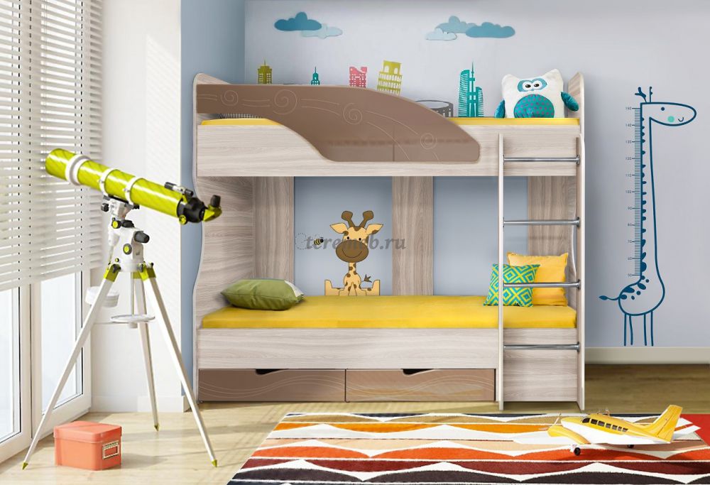 Уютная, компактная, функциональная двухъярусная кровать "Бриз-5 МДФ" - замечательное решение для маленьких детских. Она отлично оптимизирует пространство и экономит квадратные метры, а выкатные ящики добавят удобства при эксплуатации.