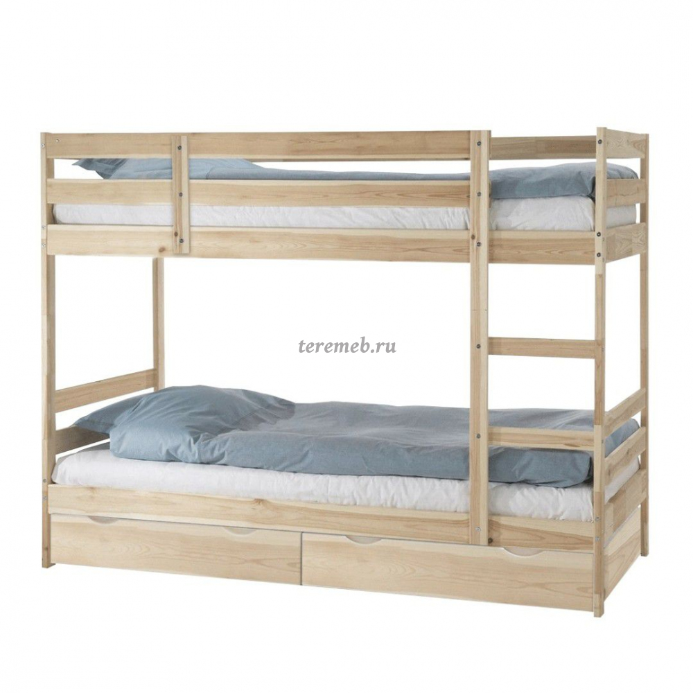 Кровать двухъярусная массив "Пирус для покраски" простое и оригинальное решение проблемы экономии пространства в небольшой комнате для двоих человек.