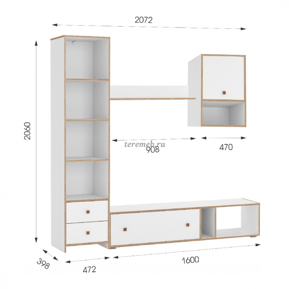 Описание: Модульная стенка "Дакота" сочетает в себе актуальные модные цвета и функциональную геометрическую форму с мотивами конструктивизма.