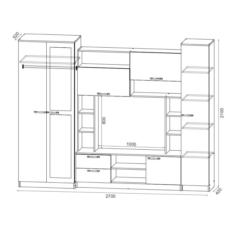 2700 х 520 х 2100 мм