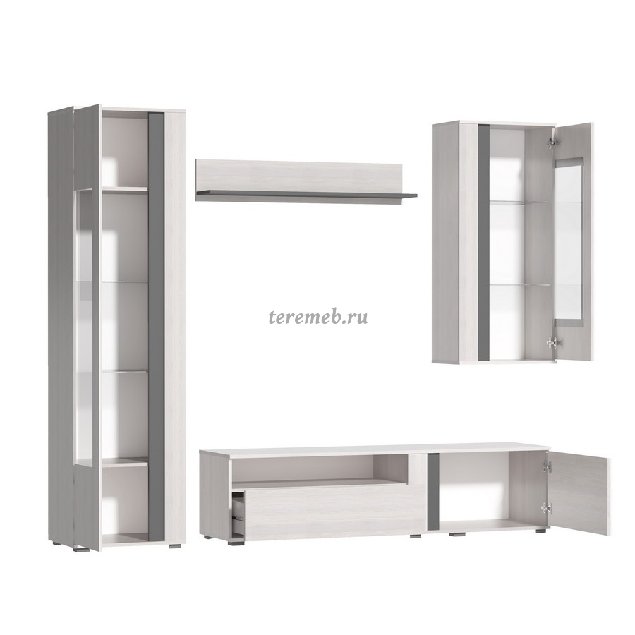 Стенка "Аллегро вариант 7" поможет правильно, красиво и стильно организовать пространство гостиной.Открытые полки, закрывающиеся шкафы различного назначения, ниша для телевизора помогают разместить одежду, бельё, книги, аппаратуру, сувениры и множество других предметов.