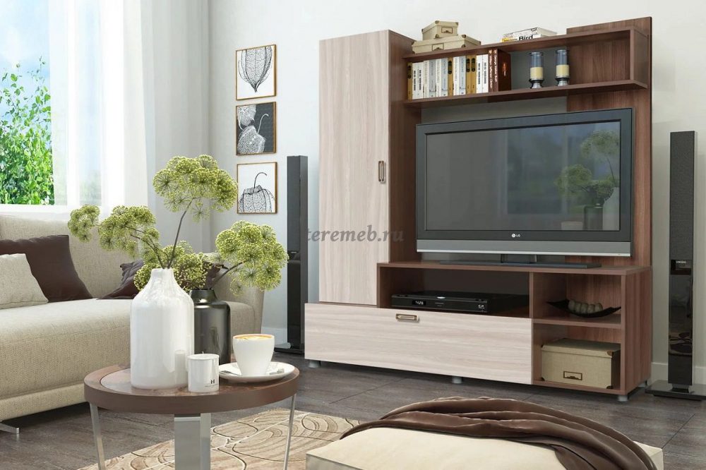 Описание: Стенка "Аллегро вариант 8" имеет небольшие компактные размеры, но несмотря на это, в ней собран полный функционал для комфортного использования в любой гостиной.