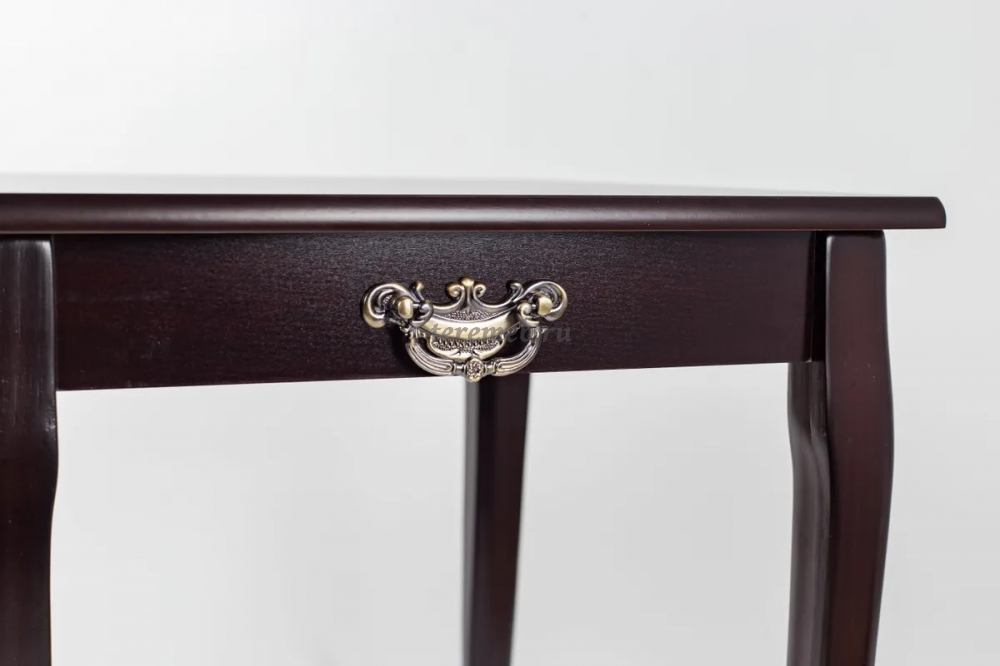 Ножки изготовлены из массива, столешница - из современного материала МДФ, ламинированного плёнками ПВХ с имитацией под ценные породы дерева.