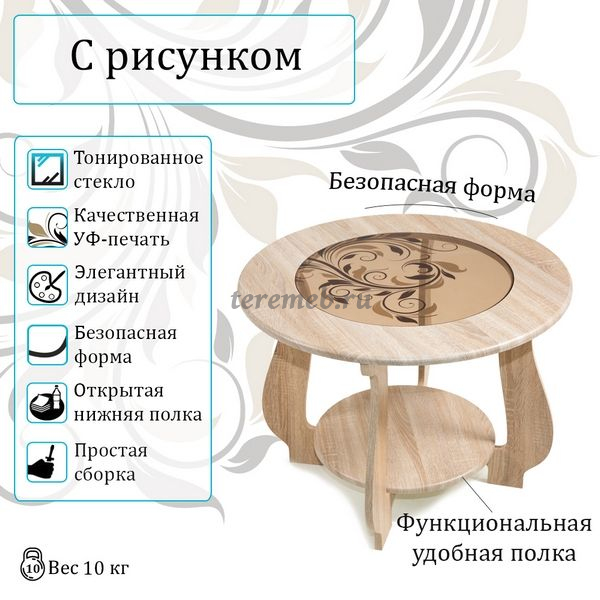 Описание: Современный журнальный столик "СЖ-24 с рисунком" обладающий стильным оригинальным дизайном притягивающим взгляды.
