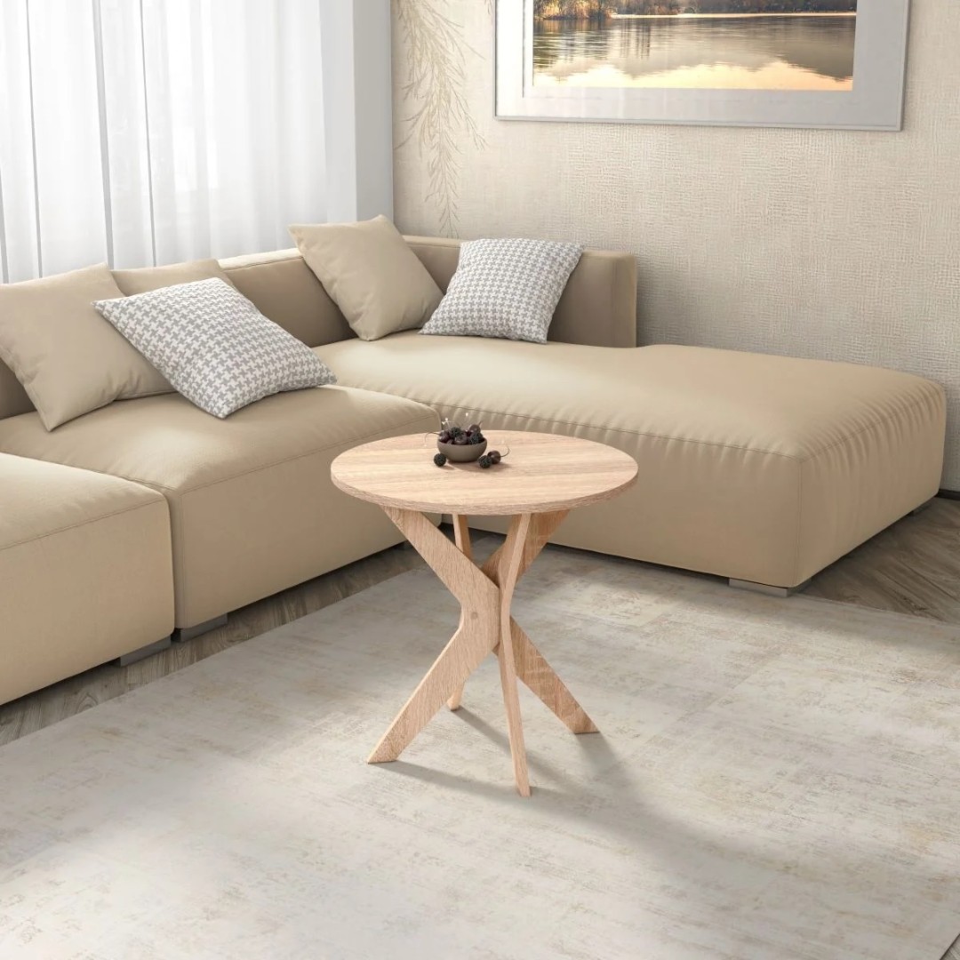 За счёт подпятников и небольшому весу стол можно легко приблизить к неподвижным дивану или креслу.