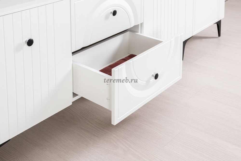 Выдвижные ящики установлены на шариковые направляющие скрытого типа с доводчиками.