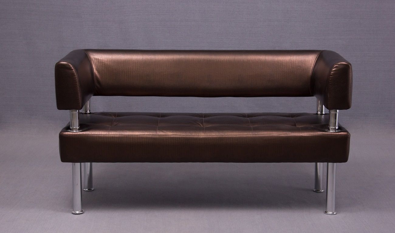 Диван установлен на декоративные металлические хромированные опоры.