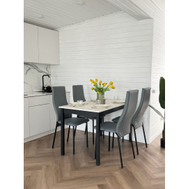 Столешница обеденного стола изготовлена из высококачественного ДСП, ламинированного слоистым износостойким защитным пластиком высокого давления. Такая технология делает поверхность стола устойчивой к различного рода воздействиям: механическим, влаги, высоких температур, чистящих средств, уксуса, кофе и т.п., что значительно увеличивает срок службы изделия.