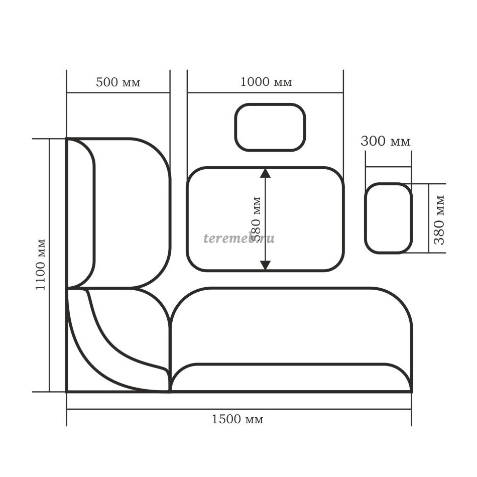Угловая скамья собирается как в правом ("Г"), так и в левом исполнении ("7").
