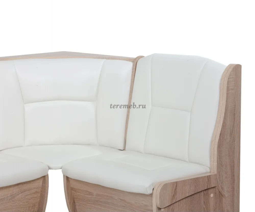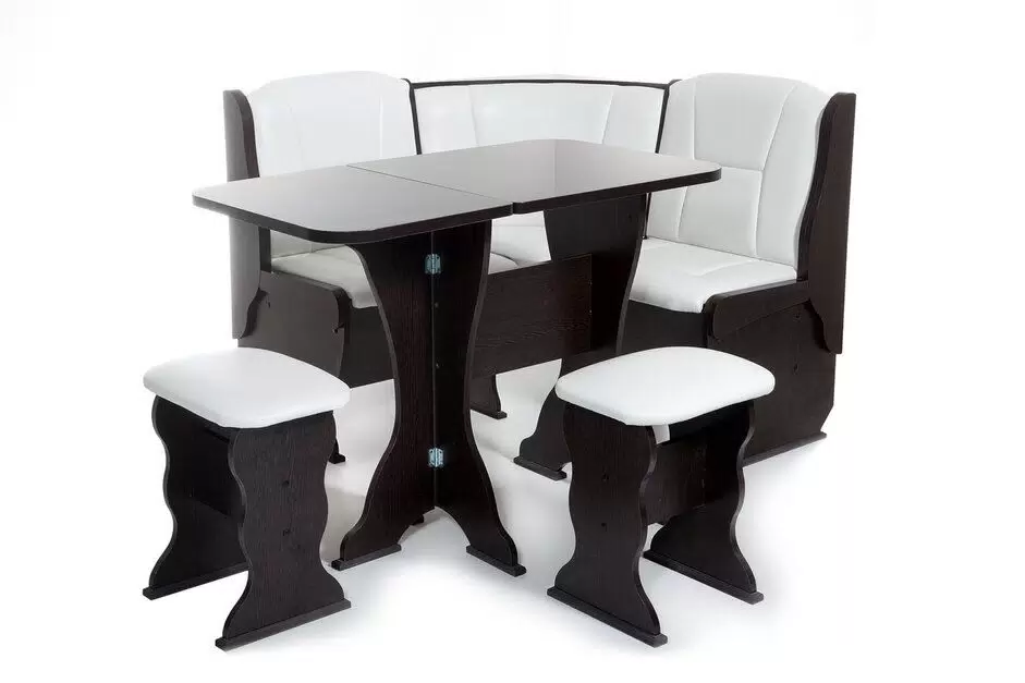 Удобное мягкое сиденье и спинка дивана и табуретов с наполнителем ППУ обиты современной экокожей, отличающийся повышенной прочностью и долговечностью.