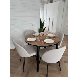 Столешница обеденного стола изготовлена из высококачественного ДСП, ламинированного слоистым износостойким защитным пластиком высокого давления. Такая технология делает поверхность стола устойчивой к различного рода воздействиям: механическим, влаги, высоких температур, чистящих средств, уксуса, кофе и т.п., что значительно увеличивает срок службы изделия.