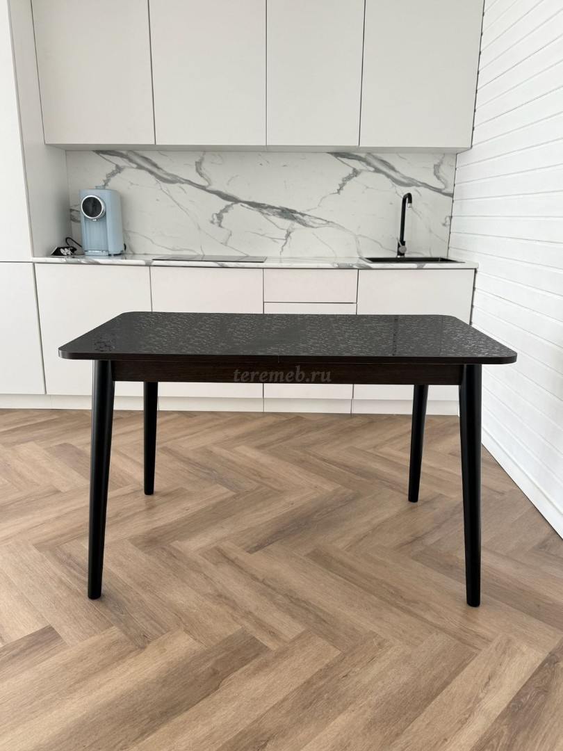 Ножки стола изготовлены из натурального дерева с покрытием в чёрный цвет.