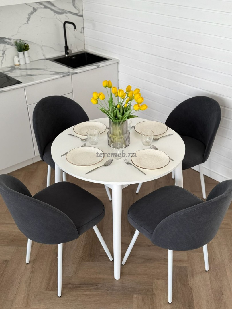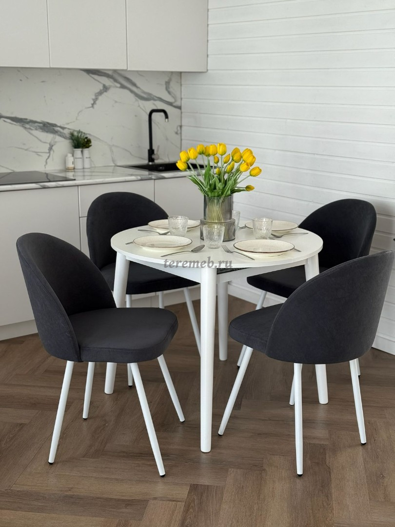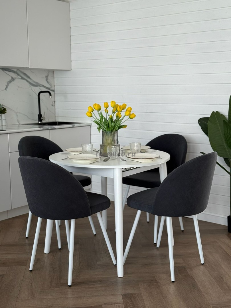 Обеденная группа: Стол раздвижной Скандинавия универсальный круглый МДФ + Стулья Элион (белый)" практична, удобна, и прекрасно дополнит интерьер любой кухни или столовой.