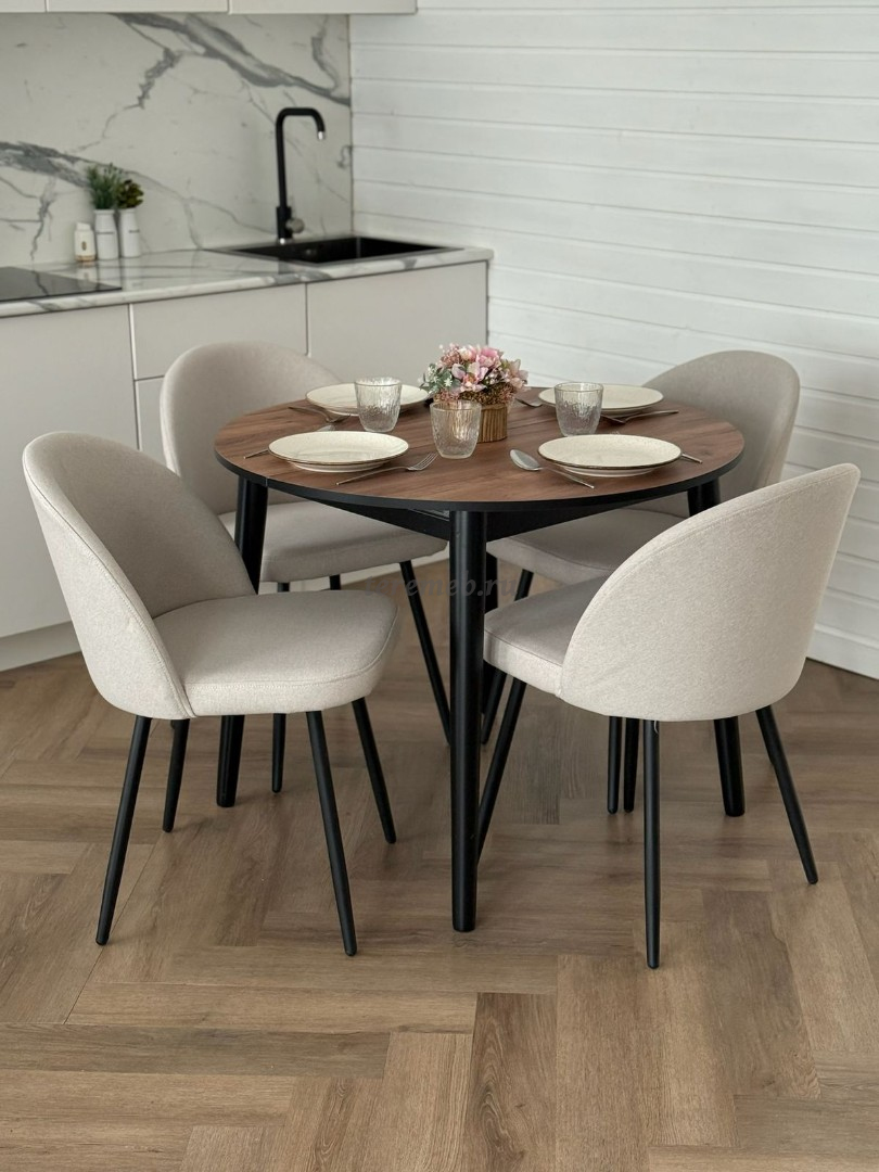 Обеденная группа: стол обеденный раздвижной "Универсальный круглый" + стулья "Элион" особенно понравится приверженцам современного стиля, а так же ценителям комфорта и удобства.