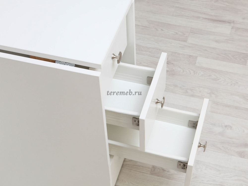 Фасады ящиков и двери укомплектованы современными ручками, изготовленными из прочного износостойкого металлического сплава.