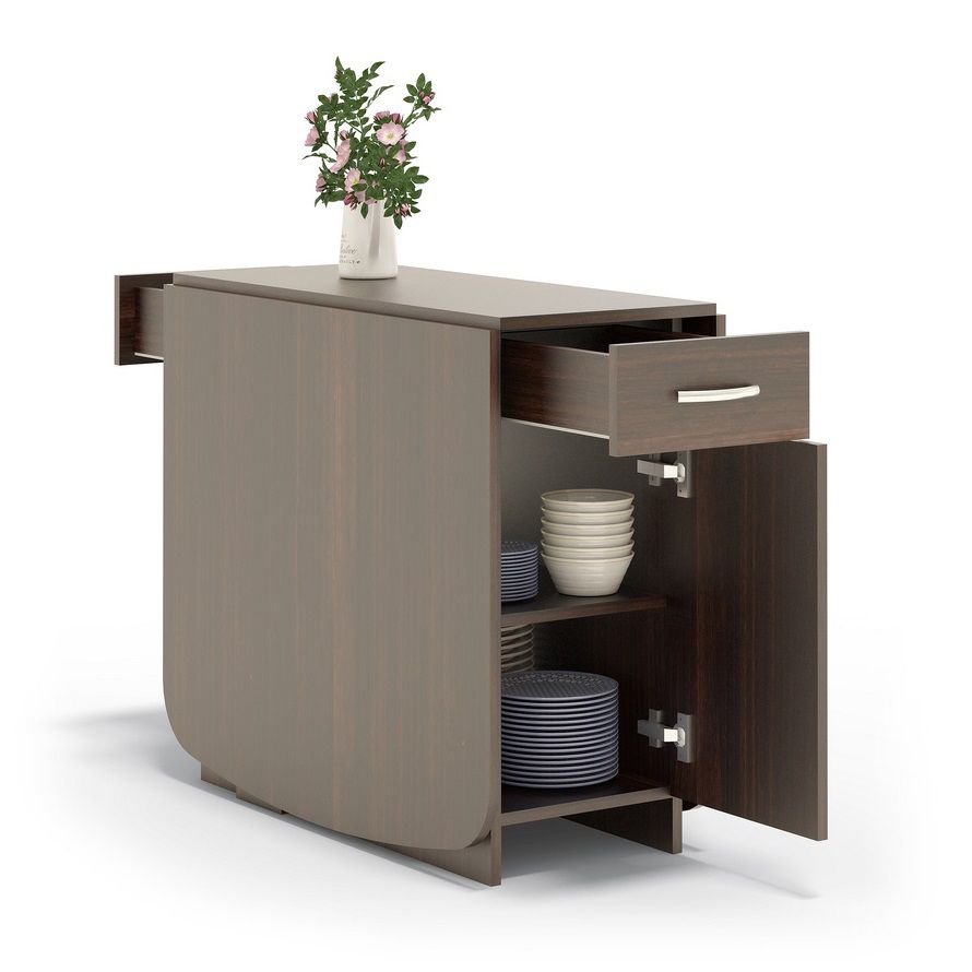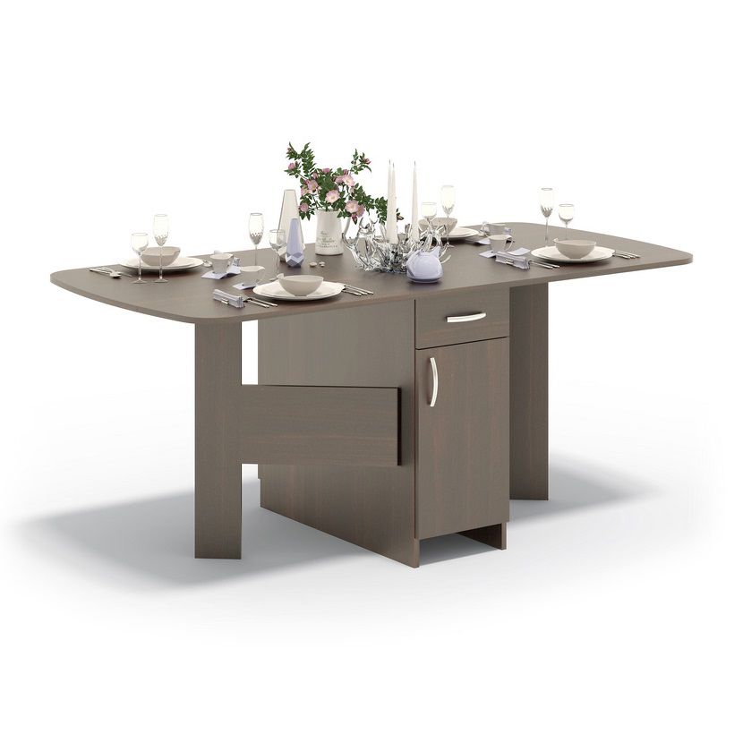Стол-книжка "СП-09.1" практичен, удобен, в сложенном виде не занимает много места, что позволяет экономить пространство в условиях малогабаритных квартир, его можно использовать как тумбу, разместив различные предметы сверху стола и внутри тумбы.