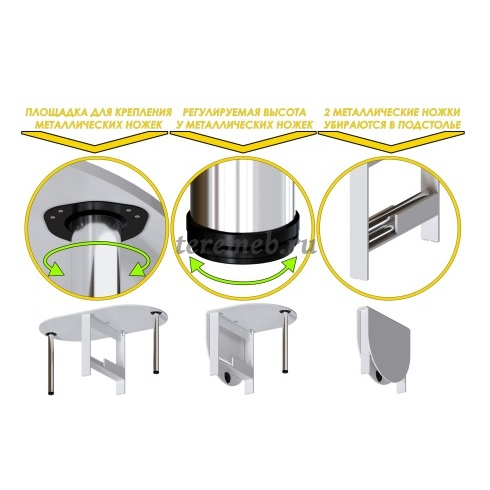 Ножки изготовлены из хромированной сварной трубы d60 мм с регулируемыми пластиковыми опорами.