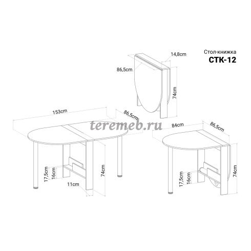 Стол-книжка раскладной "СтК-12" прекрасно дополнит интерьер гостиной, столовой или кухни.