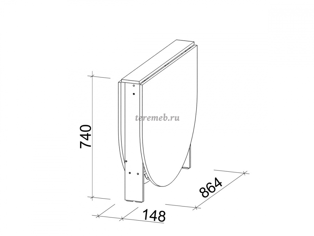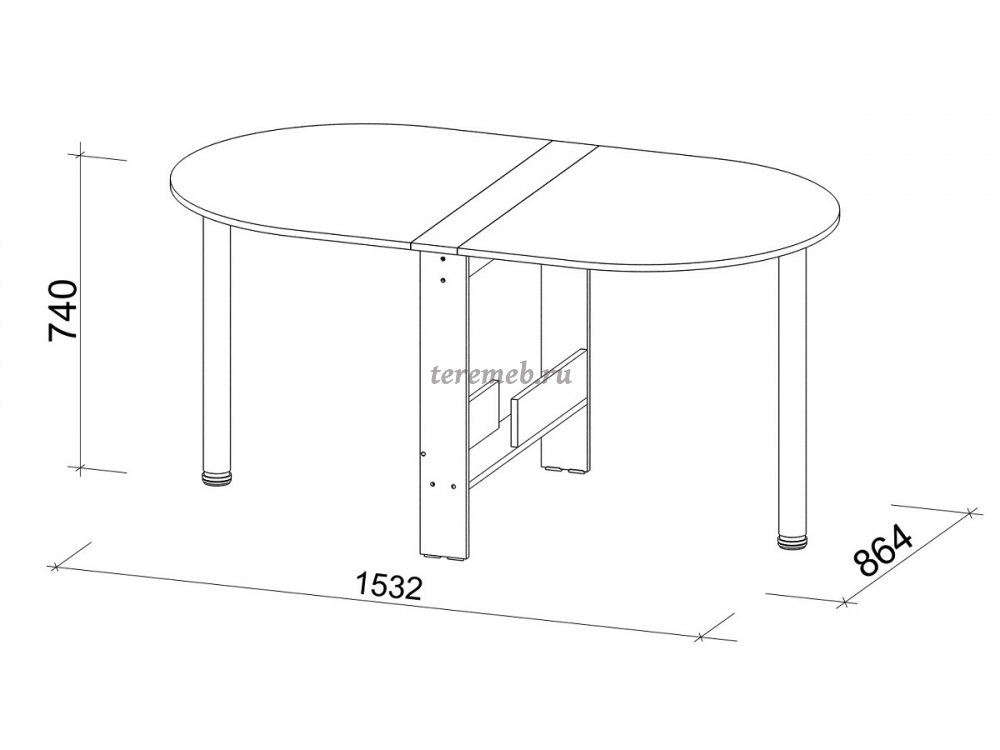 Торцы столешницы имеют овальную форму со скруглёнными торцами.