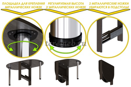 Ножки-опоры изготовлены из стальной профильной трубы круглого сечения в цвете "хром", что обеспечивает надёжность данной модели и облегчает уход в эксплуатации.