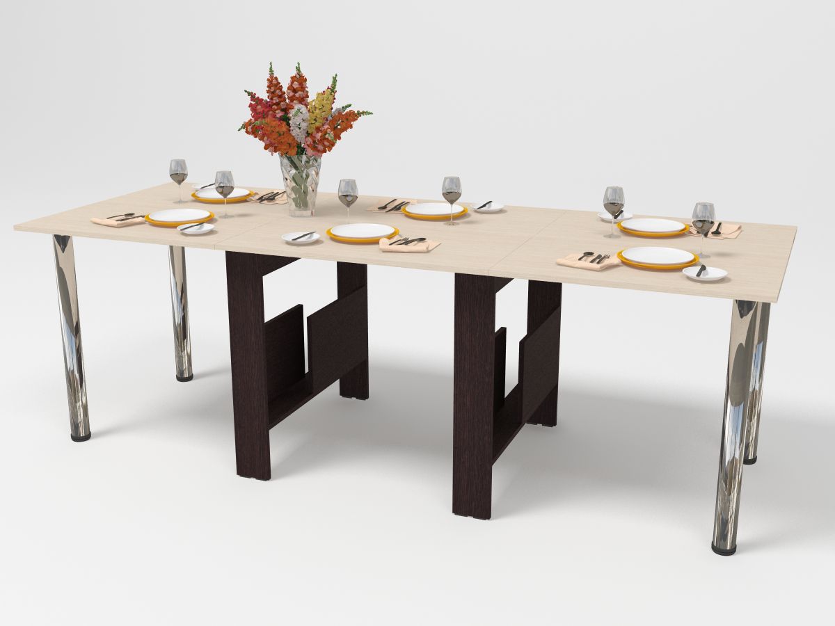 Качественно изготовленный стол-книжка прослужит Вам долгие годы, а благодаря своей конструкции он идеален для любой семьи, когда легким мановением руки Вы можете сделать поверхность этого стола больше и пригласить на обед друзей. Но если нужно собрать и родственников, то столешницу можно превратить в огромную поляну, на которой найдётся место для всех.