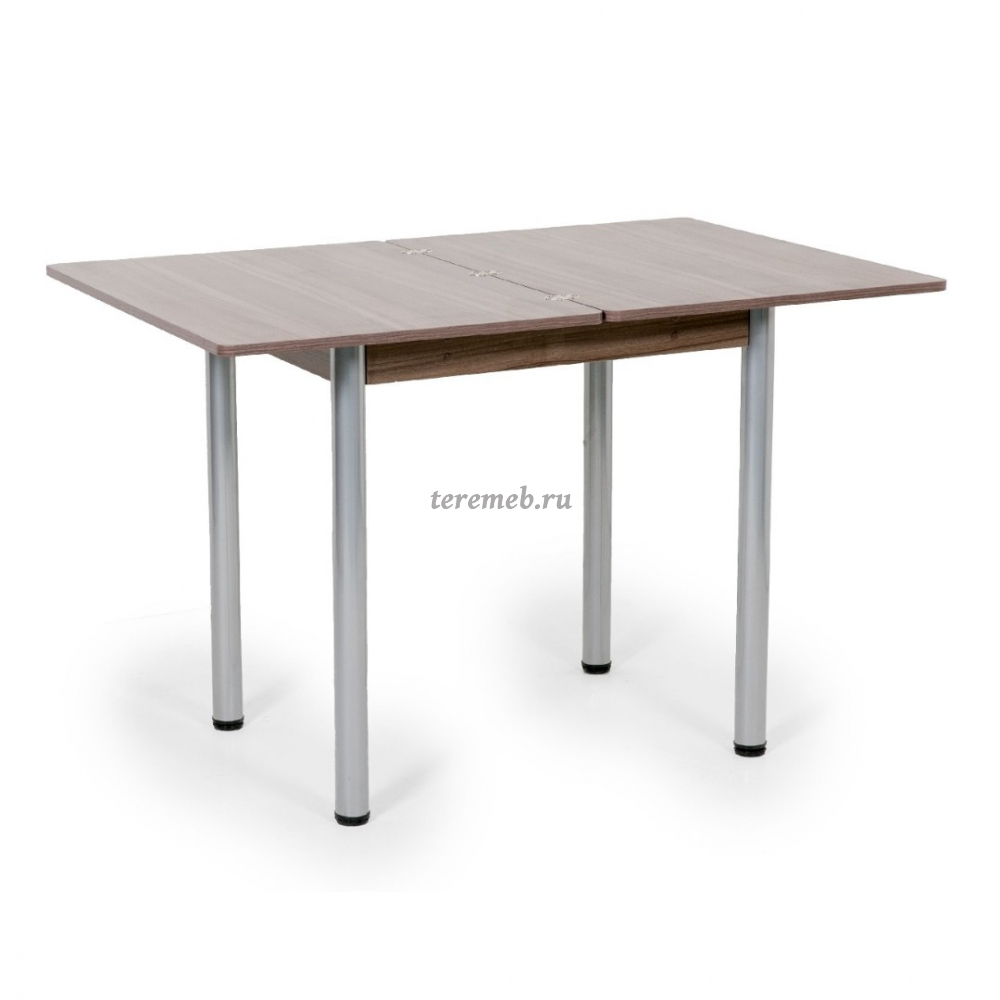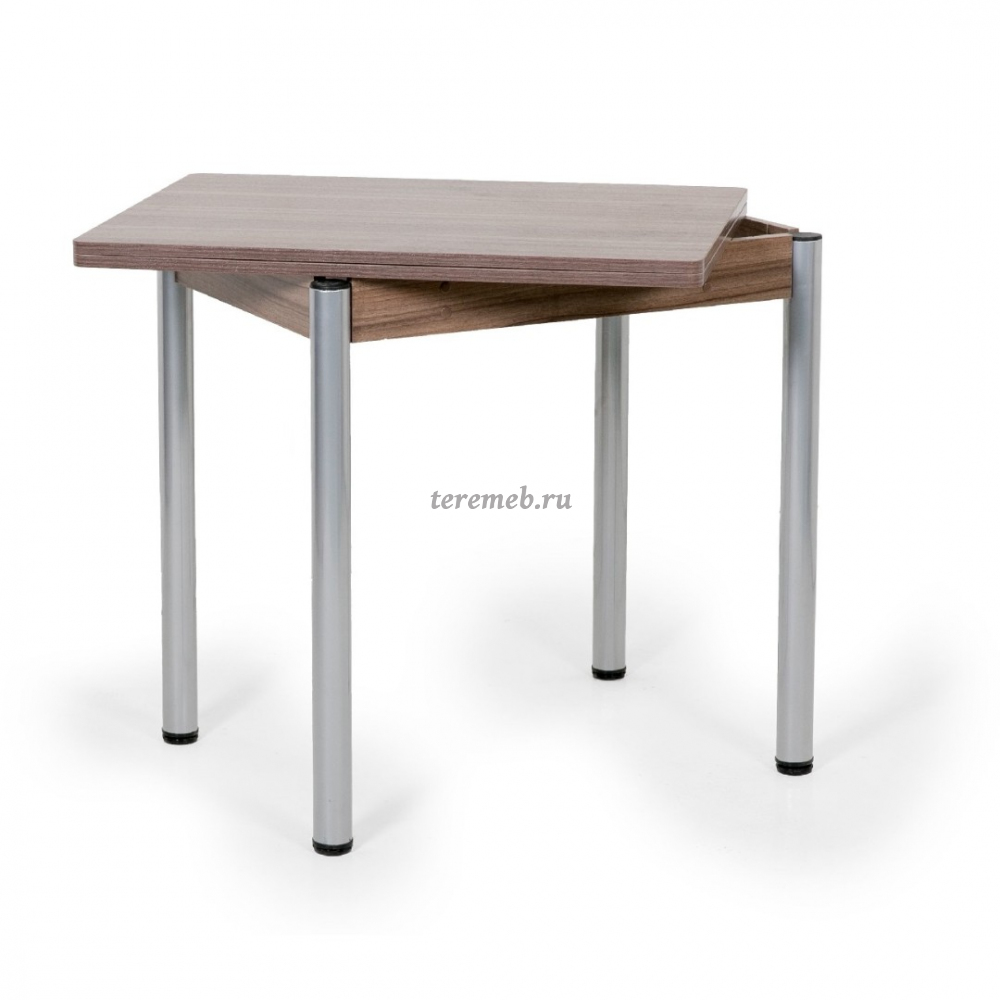 Стол оборудован поворотно-раскладным механизмом трансформации, позволяющим увеличить длину столешницы в два раза.