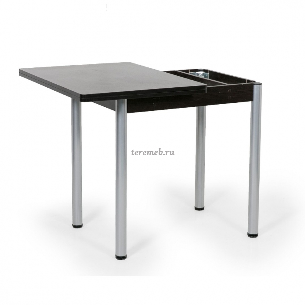 Стол оборудован поворотно-раскладным механизмом трансформации, позволяющим увеличить длину столешницы в два раза.