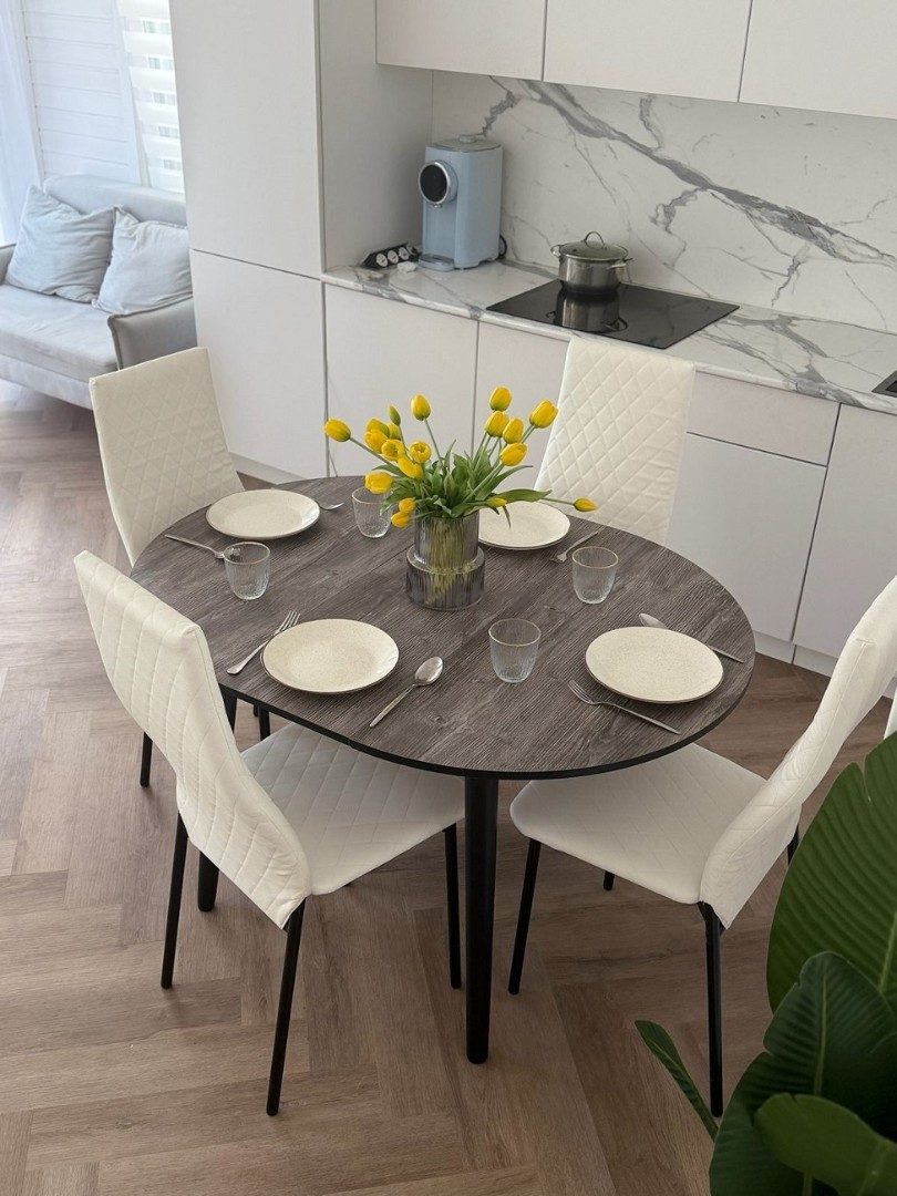 Стол обеденный раздвижной "Универсальный круглый" практичен и удобен, хорошо сочетается с кухонными гарнитурами и прекрасно дополнит интерьер любой кухни или столовой.