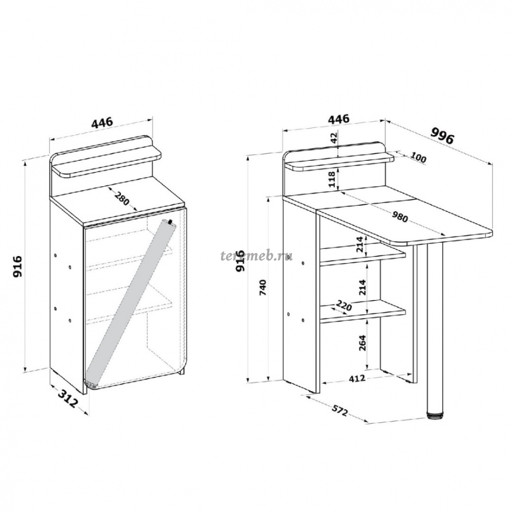 Стол раскладной "СП-19" из рабочего положения трансформируется в узкую тумбу, внутри которой хранится опора. В собранном состоянии экономит пространство дома, поэтому хорошо впишется в любую, даже небольшую комнату.