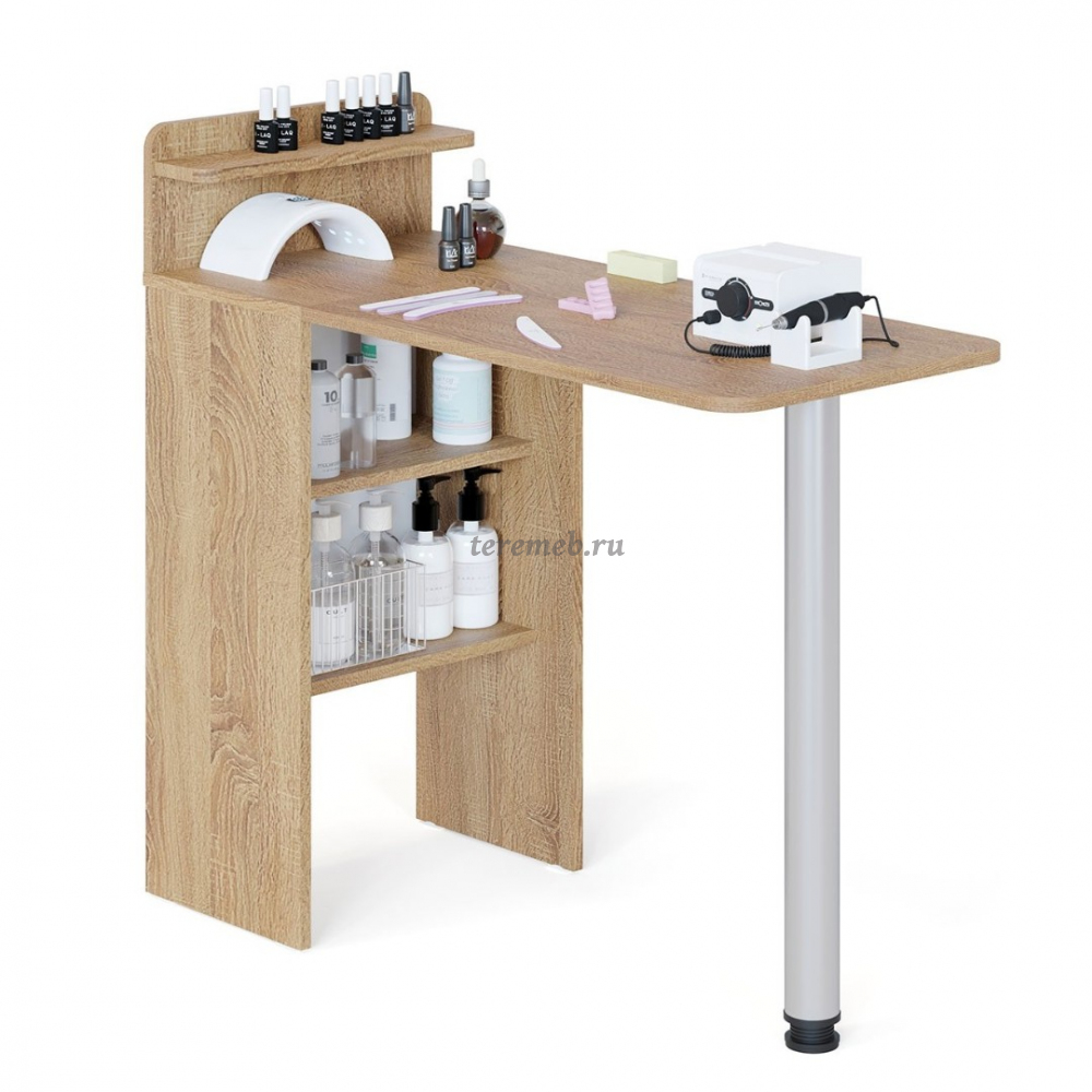 Описание: Многофункциональный раскладной стол "СП-19" - это компактная модель с металлической хромированной опорой, регулируемой по высоте, и вместительными полками для хранения необходимых вещей и инструментов. Современный универсальный стол может использоваться как домашнее рабочее место с возможностью размещения компьютера и необходимых документов. Может применяться как маникюрный стол, используемый в домашних условиях или салонах красоты, а также как раскладной обеденный стол, идеально подходящий для малогабаритных квартир.