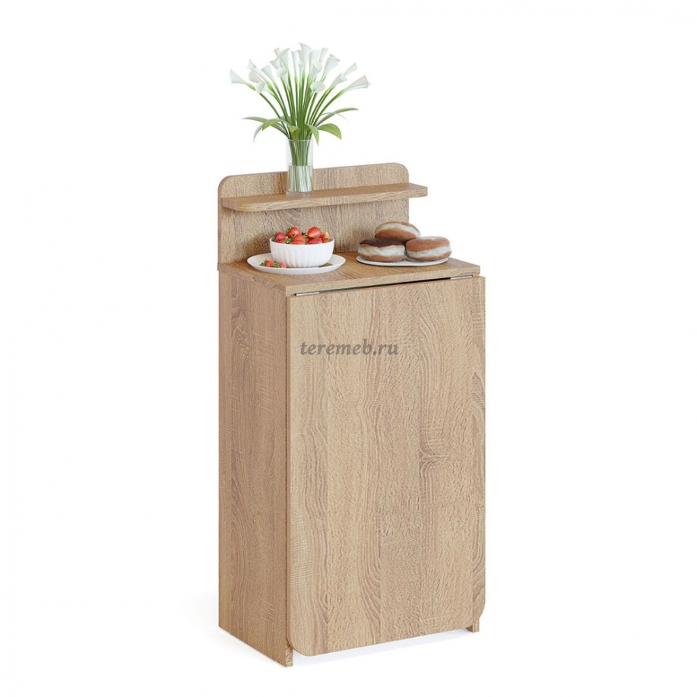 Стол раскладной "СП-19"  из рабочего положения трансформируется в узкую тумбу, внутри которой хранится опора. В собранном состоянии экономит пространство дома, поэтому хорошо впишется в любую, даже небольшую комнату.