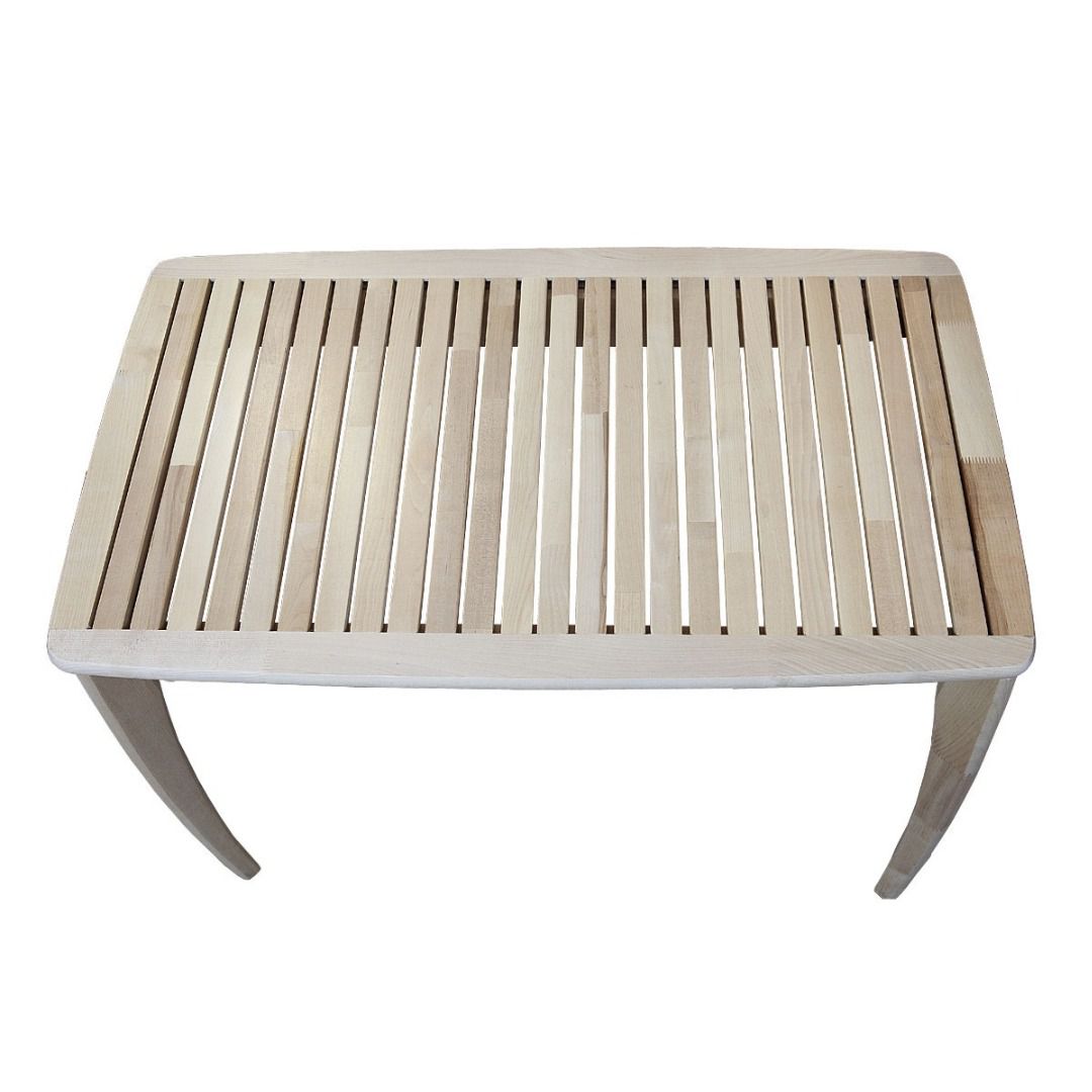 Изготовлен из массива берёзы, покрытой экологически чистым тонированным лаком на водной основе. Специальная обработка проникает в поры древесины делают эту модель устойчивой к влажности, солнечным лучам, высоким температурам и предохраняет её от загрязнений.