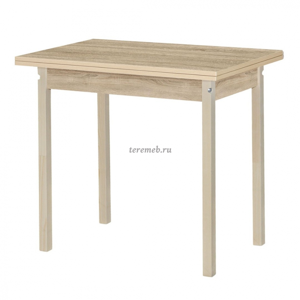 Стол оборудован поворотно-раскладным механизмом трансформации, позволяющим увеличить длину столешницы в два раза.