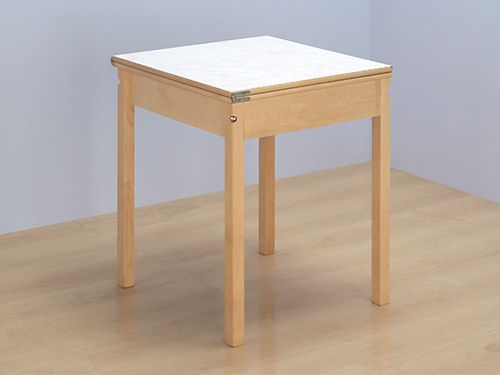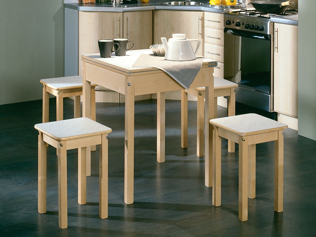 Столешница обеденного стола изготовлена из высококачественного ДСП, ламинированного слоистым износостойким защитным пластиком высокого давления, а торцы столешницы отделаны брусками из массива дерева. Такая технология делает поверхность стола устойчивой к различного рода воздействиям: механическим, влаги, высоких температур, чистящих средств, уксуса, кофе и т.п., что значительно увеличивает срок службы изделия. Цвета столешницы "мрамор", "бук или "вишня".