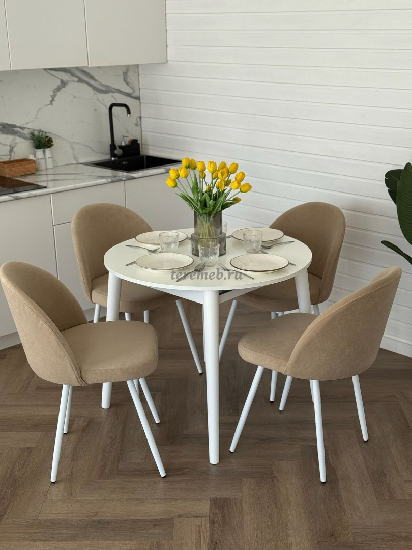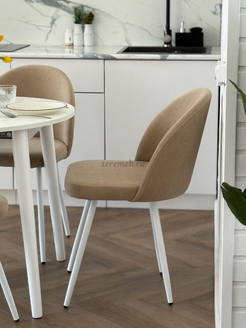 Сиденье и спинка стула мягкие с наполнителем из пенополиуретана стандартной плотности и обтянуты высококачественным износостойкой тканью велюр "Мадера №37" бежевого цвета, что делает данную модель надёжной и неприхотливой в эксплуатации.