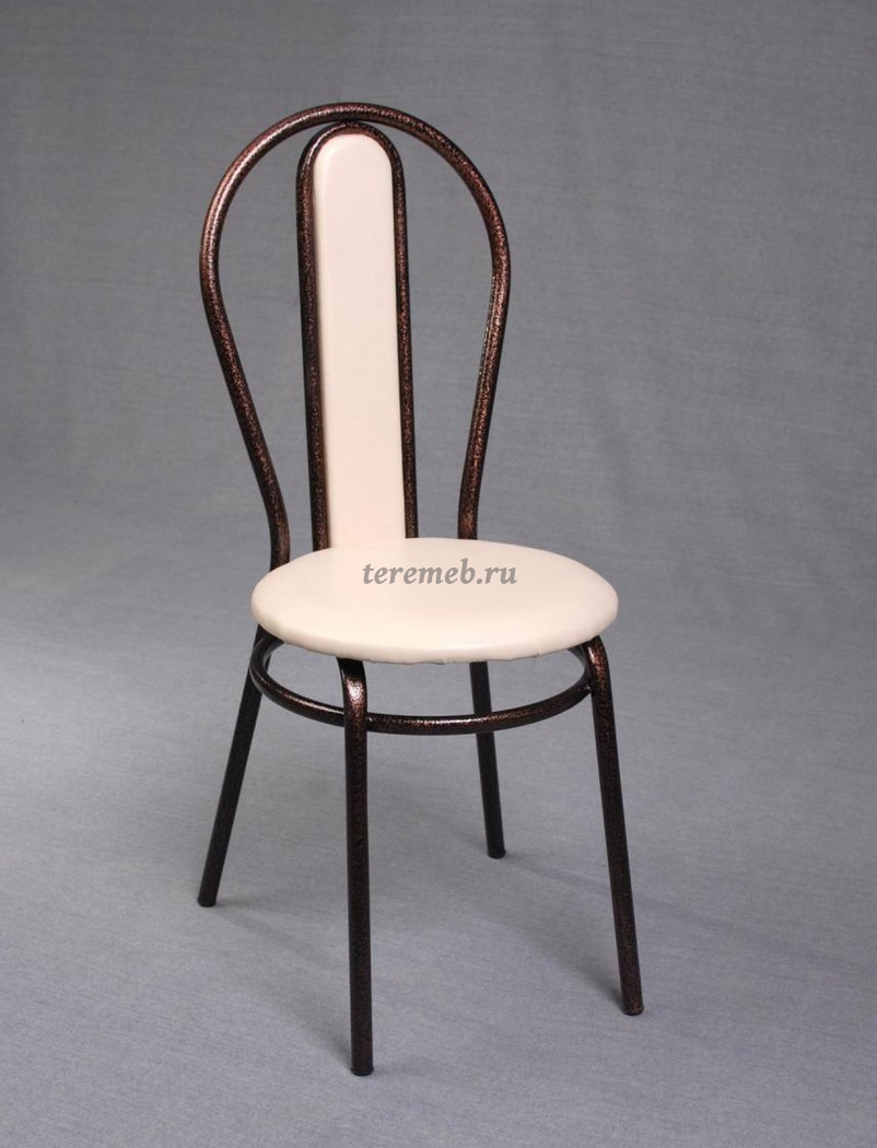 Каркас стула изготовлен из металла с полимерным покрытием цвета "антик медный". Вертикальные прутья на спинке стула поддерживают спину, разгружая поясничный отдел.