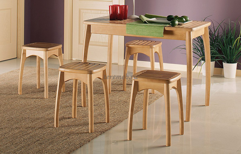 Табурет изготовлен из массива берёзы, покрытый тонированным лаком. Специальная обработка древесины делают эту модель устойчивой к влажности, солнечным лучам и высоким температурам.