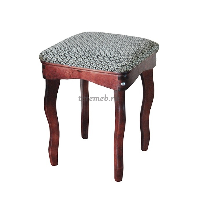 Табурет изготовлен из массива берёзы, покрытый тоновой морилкой на водной основе, ПУ грунт, ПУ лак.