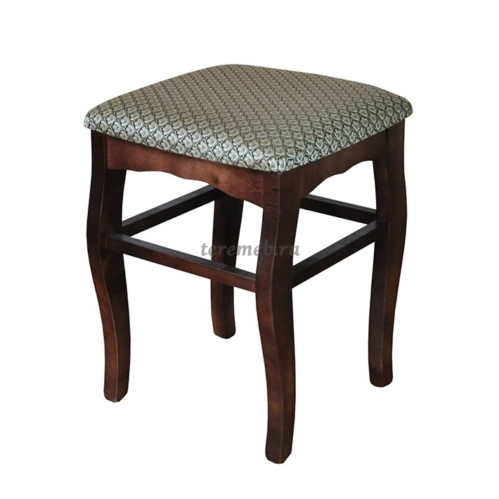 Табурет изготовлен из массива берёзы, покрытый тоновой морилкой на водной основе, ПУ грунт, ПУ лак.