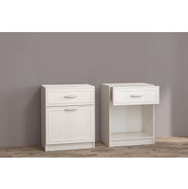 На фасадах установлены изящные ручки из прочного пластика в цвете "антик/белый".